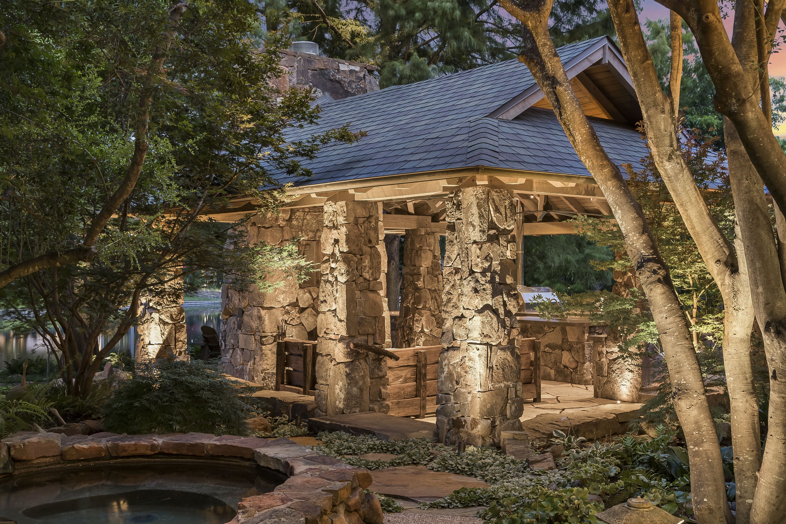 Adding custom lighting features to your home is the perfect way to elevate your space by bringing in unique style and personal flair. At Signature, we have the expertise to bring your vision to life and make your outdoor space the place of your dreams. Along with our partner, Aquaterra Outdoors, we added rustic charm to this newly constructed outdoor living area and kitchen, using superior techniques with flawless execution.
